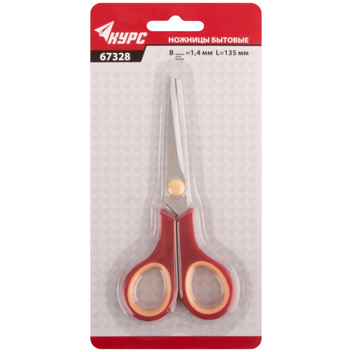 Ножницы бытовые нержавеющие, прорезиненные ручки, толщина лезвия 1,4 мм, 135 мм (67328)