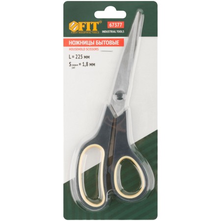 Ножницы бытовые нержавеющие, прорезиненные ручки, толщина лезвия 1,8 мм, 225 мм (67377)
