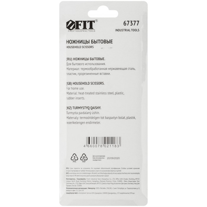 Ножницы бытовые. Толщина лезвия 1,8 мм. Материал: нержавеющая сталь, пластиковые ручки с резиновыми вставками. Упаковка: блистер.