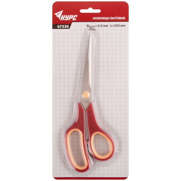 Ножницы бытовые нержавеющие, прорезиненные ручки, толщина лезвия 2,0 мм, 215 мм (67330)