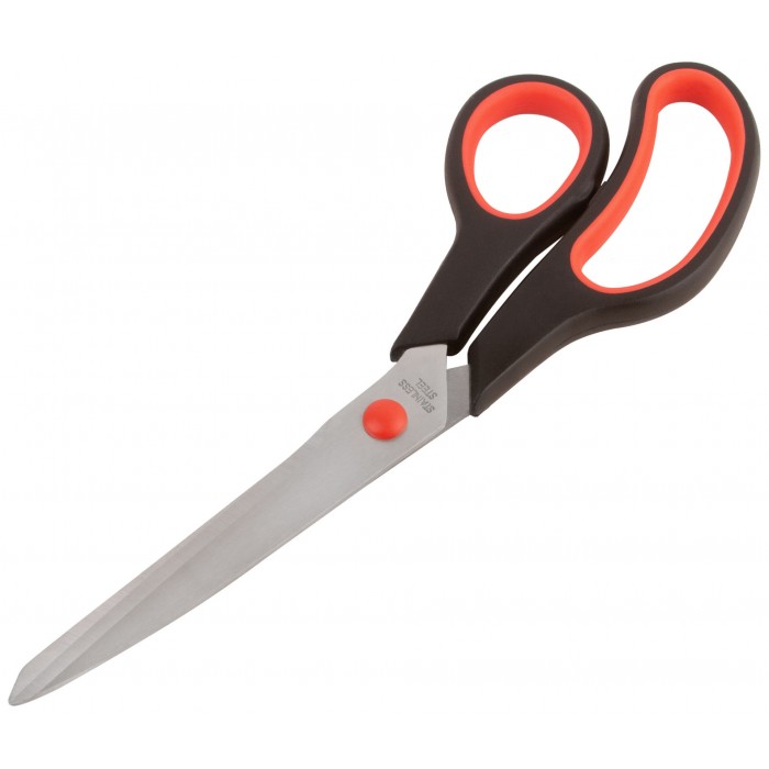 Ножницы бытовые нержавеющие, прорезиненные ручки, толщина лезвия 2,0 мм, 250 мм (67379)