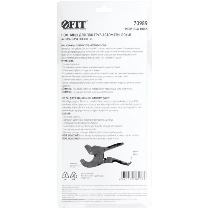 Ножницы для металлопластиковых труб автоматические 64 мм (70989)
