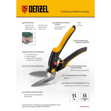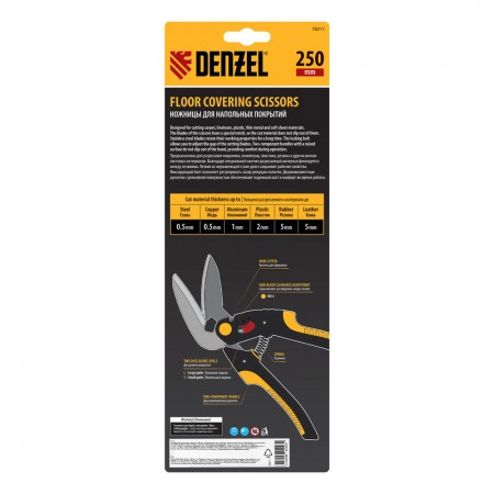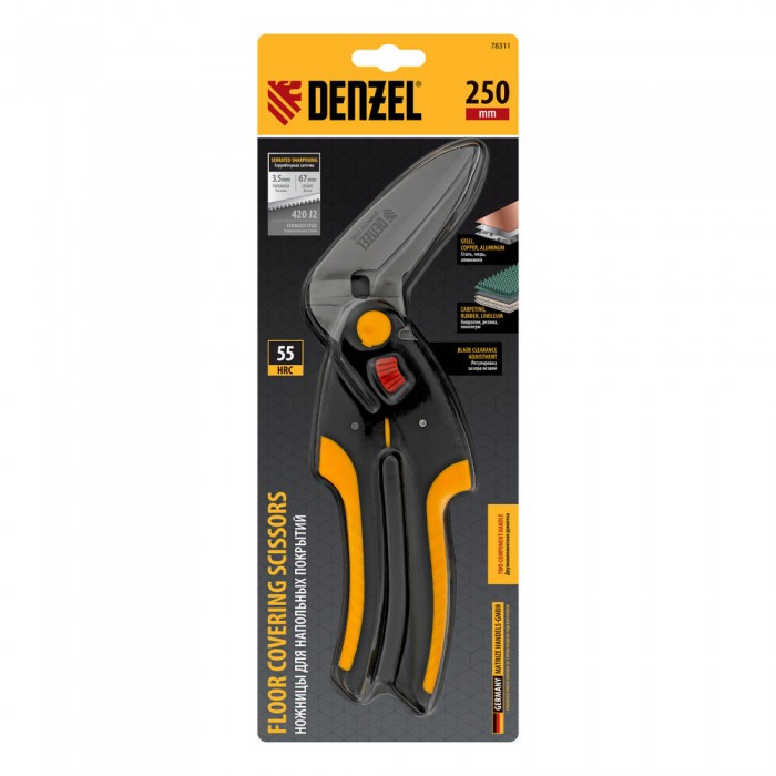 Ножницы для напольных покрытий, 250 мм, нержавеющая сталь, функция перерезания Denzel (78311)