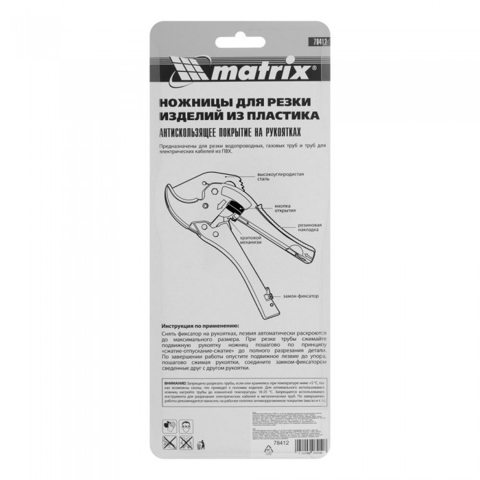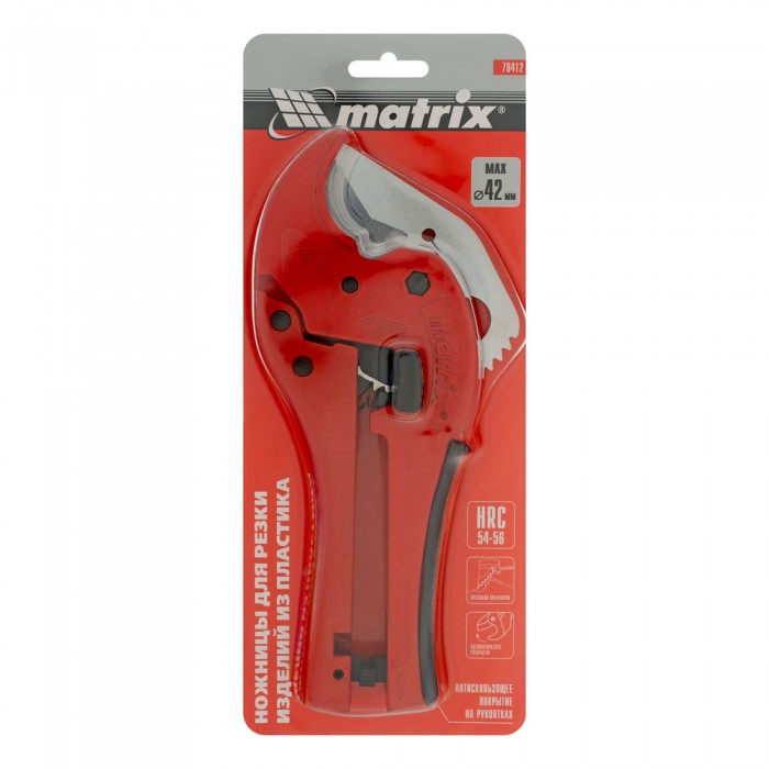 Ножницы для резки изделий из ПВХ, D до 42 мм, обрезиненная опорная рукоятка, порошковое покрытие рукояток Matrix (78412)