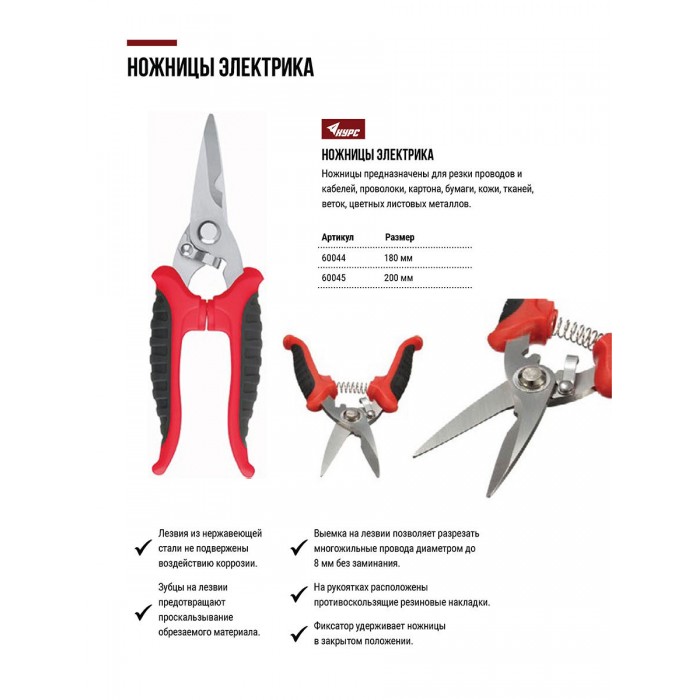 Ножницы электрика 180 мм (60044)