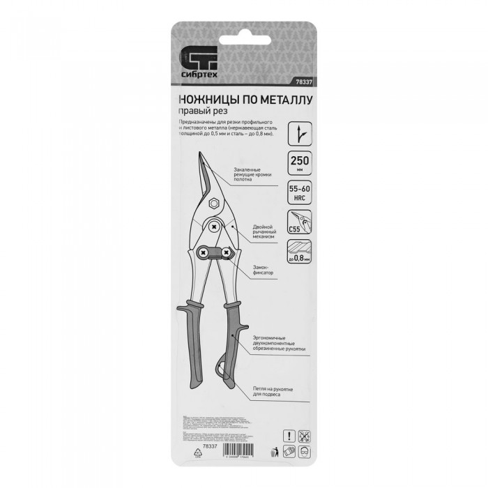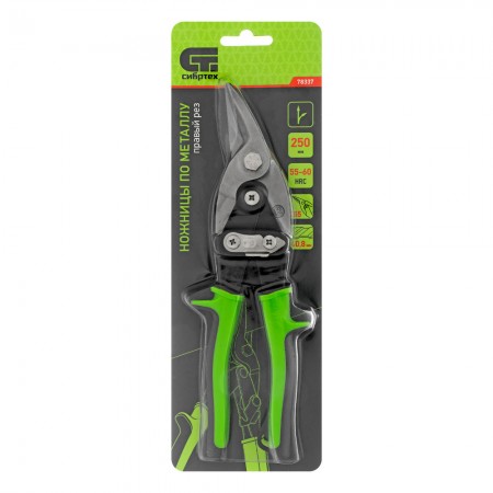 Ножницы по металлу, 250 мм, правый рез, сталь С55, двухкомпонентные рукоятки СИБРТЕХ (78337)