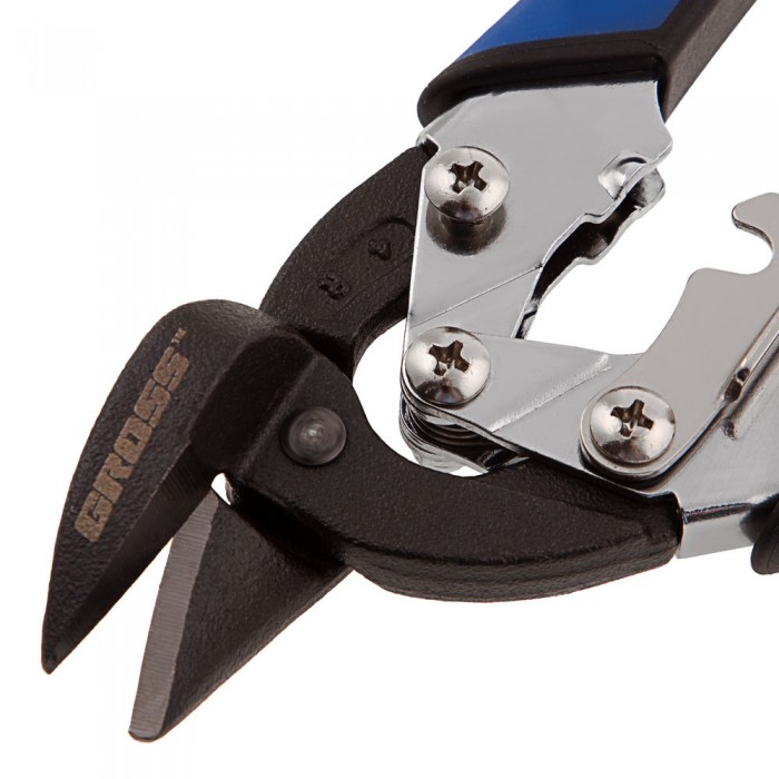 Ножницы по металлу "Piranha", 185 мм, прямой и правый рез, сталь СrM, двухкомпонентные рукоятки Gross