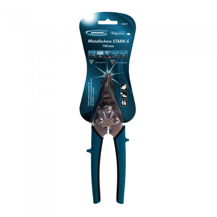 Ножницы по металлу "Piranha", 190 мм, прямой рез, сталь СrM, двухкомпонентные рукоятки Gross
