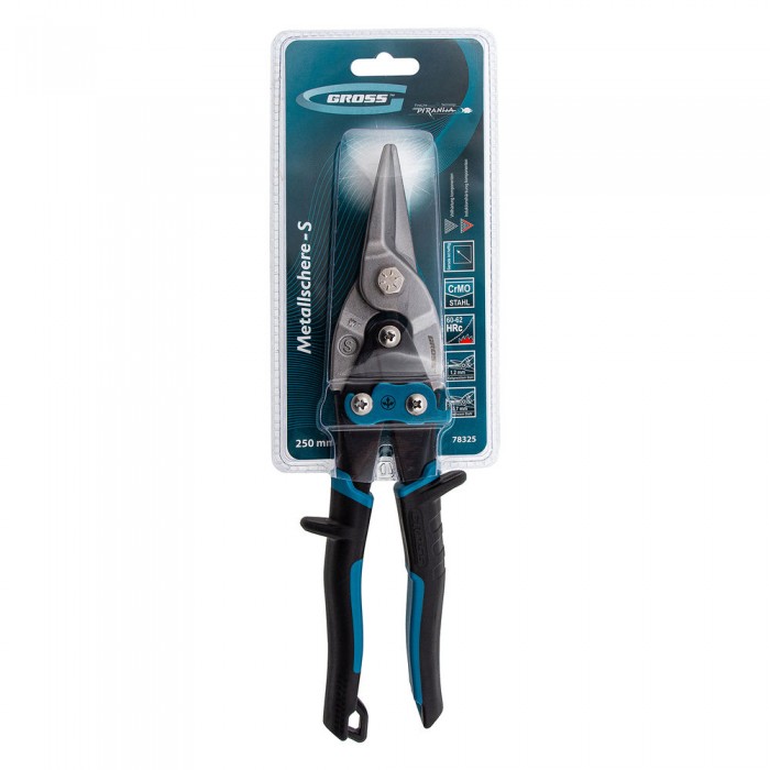 Ножницы по металлу "Piranha", 250 мм, прямой рез, сталь CrMo, двухкомпонентные рукоятки Gross