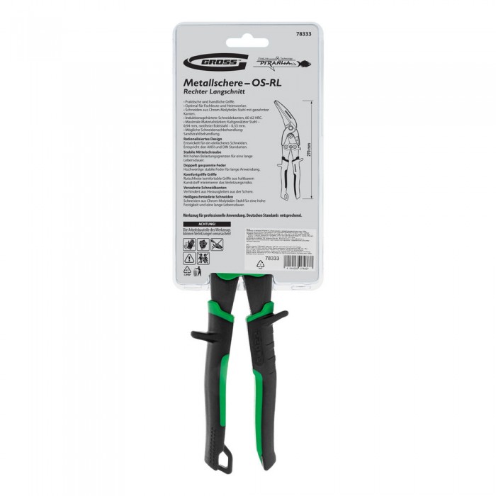 Ножницы по металлу "Piranha", 270 мм, прямой и правый проходной рез, сталь СrMo, двухкомпонентные рукоятки Gross
