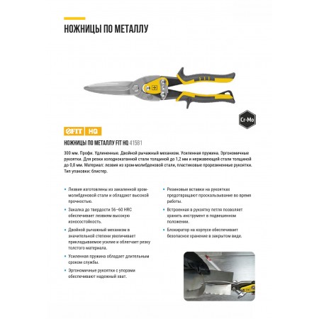 Ножницы по металлу усиленные CrMo Профи, прорезиненные ручки, удлиненные прямые 300 мм (41581)