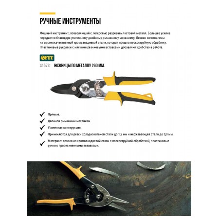 Ножницы по металлу усиленные CrV Профи, прорезиненные ручки, прямые 260 мм (41573)