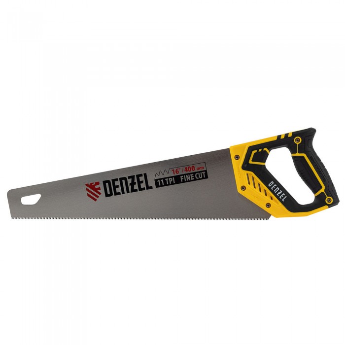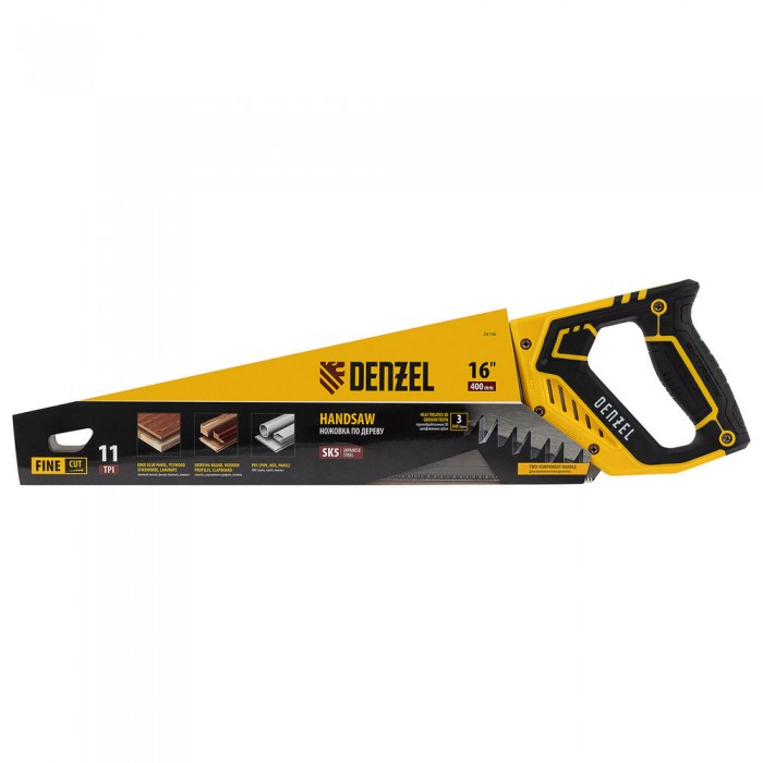 Ножовка по дереву, 400 мм, 11 TPI, зуб 3D, двухкомпонентная рукоятка Denzel (24146)