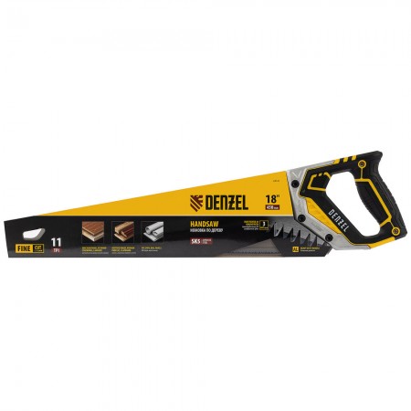 Ножовка по дереву, 450 мм, 11 TPI, зуб 3D, металлопластиковая рукоятка Denzel (24141)
