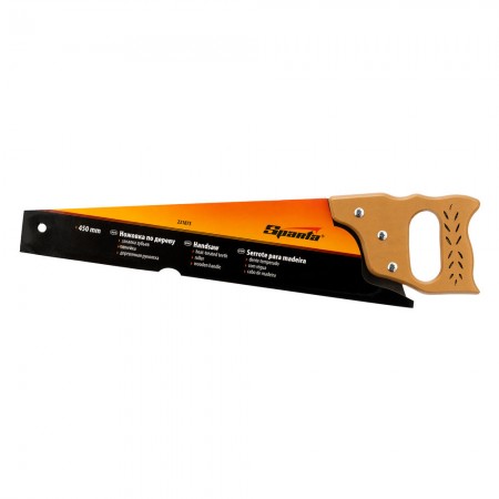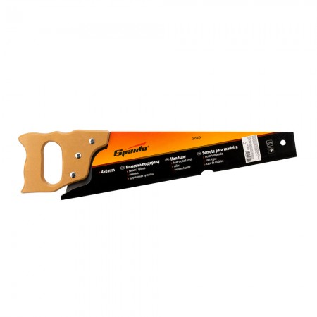 Ножовка по дереву, 450 мм, 7-8 TPI, каленый зуб, линейка, деревянная рукоятка Sparta