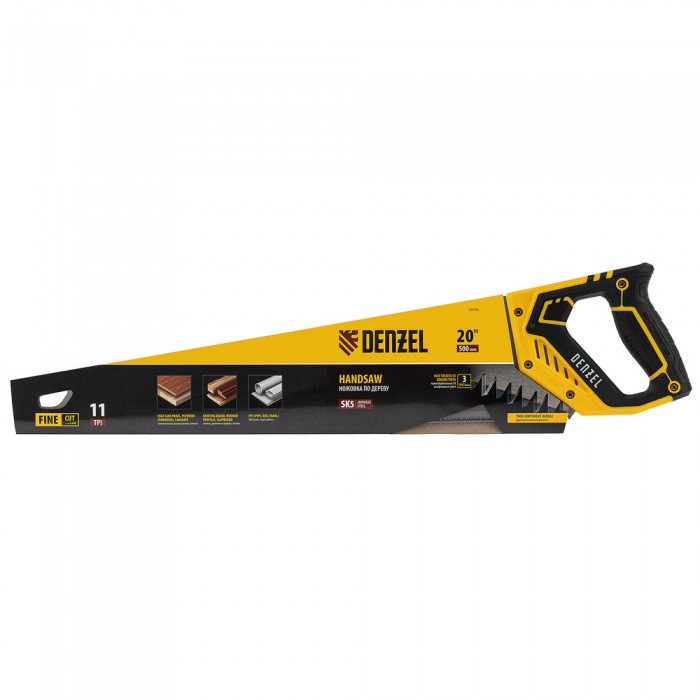 Ножовка по дереву, 500 мм, 11 TPI, зуб 3D, двухкомпонентная рукоятка Denzel (24148)