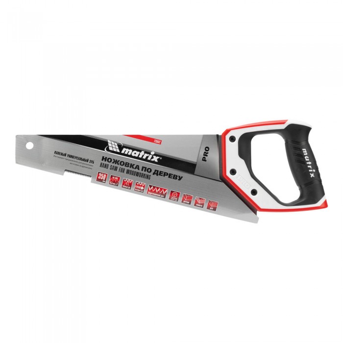 Ножовка по дереву для точных пильных работ, 350 мм, каленый зуб 3D, 14 TPI, трехкомпонентная рукоятка, Pro Matrix