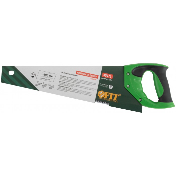 Ножовка по дереву, крупный каленый зуб 5 TPI, 2D заточка, пластиковая прорезиненная ручка 400 мм (40421)