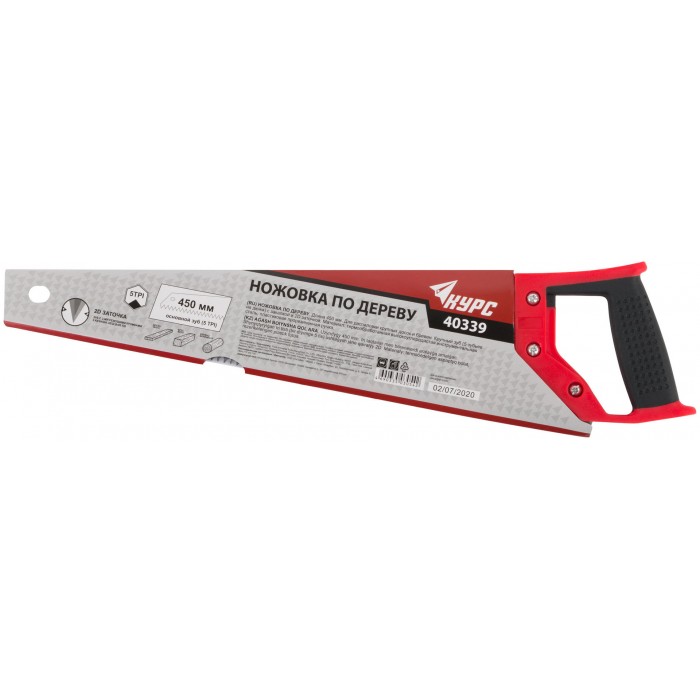 Ножовка по дереву, крупный каленый зуб 5 ТPI, 2D заточка, пластиковая прорезиненная ручка 450 мм (40339)