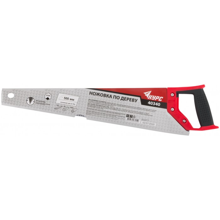Ножовка по дереву, крупный каленый зуб 5 ТPI, 2D заточка, пластиковая прорезиненная ручка 500 мм (40340)