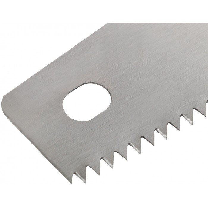 Крупный зуб (5 TPI). С закалкой и двугранной заточкой. Для распиловки крупных досок и бревен. Материал: высокоуглеродистая инструментальная сталь, пластиковая прорезиненная ручка.
