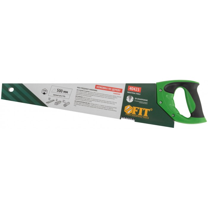 Ножовка по дереву, крупный каленый зуб 5 TPI, 2D заточка, пластиковая прорезиненная ручка 500 мм (40423)
