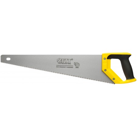 Профи. Крупный зуб (основные: 5 зубьев на дюйм, запил: 7 зубьев на дюйм). Зубья с 2-х гранной заточкой и высокочастотной закалкой. Средний зуб на конце полотна для удобного старта работы. Материал: высокоуглеродистая инструментальная сталь, пластиковая ручка с прорезиненной вставкой.