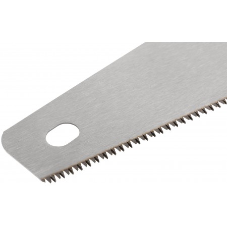 Профи. Для тонкого пиления древесины твердых и мягких пород, ламината, ДСП, фанеры и пластика. Мелкие зубья (12 TPI) со специальной трехгранной заточкой и высокочастотной закалкой пилят вдоль и поперек волокон, обеспечивая чистоту реза и высокую точность. Материал: высокоуглеродистая инструментальная сталь, трехкомпонентная пластиковая прорезиненная ручка.