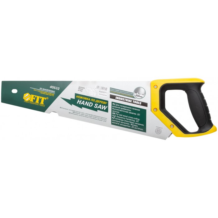 Переменный профиль зуба. Для поперечного пиления по мокрой (свежей) древесине. Высокочастотная закалка зубьев. Материал: полотно из инструментальной стали, пластиковая ручка с прорезиненной вставкой.