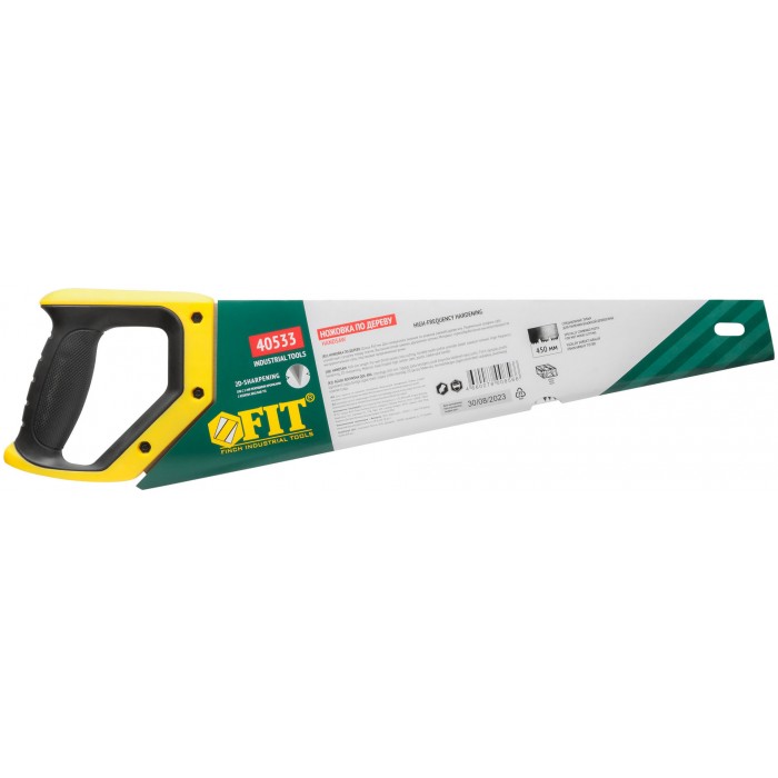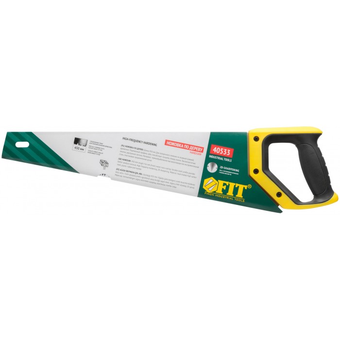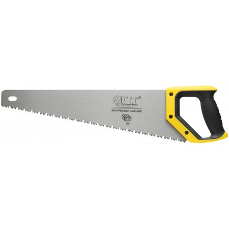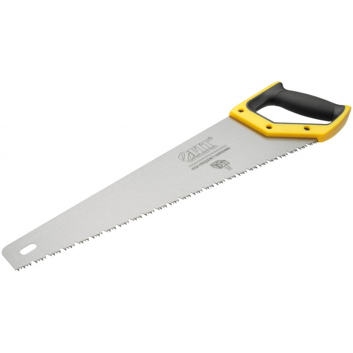 Переменный профиль зуба. Для поперечного пиления по мокрой (свежей) древесине. Высокочастотная закалка зубьев. Материал: полотно из инструментальной стали, пластиковая ручка с прорезиненной вставкой.