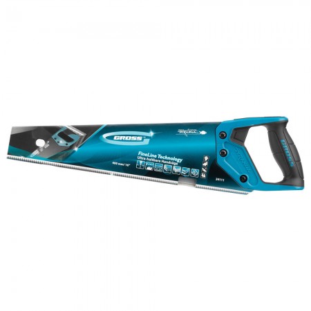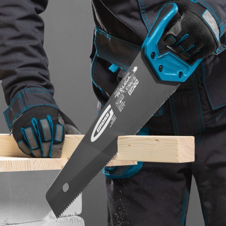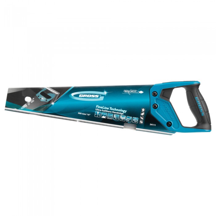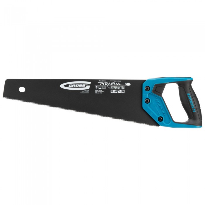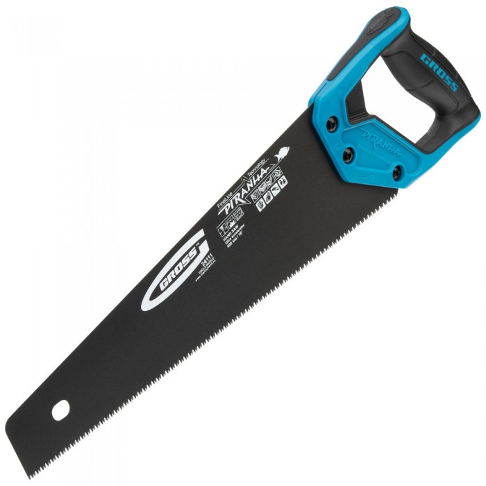 Ножовка по дереву "Piranha", 400 мм, 11-12 TPI, зуб-3D, каленый зуб, тефлоновое покрытие полотна, двухкомпонентная рукоятка Gross