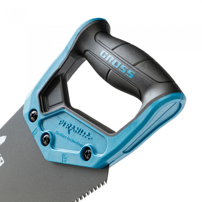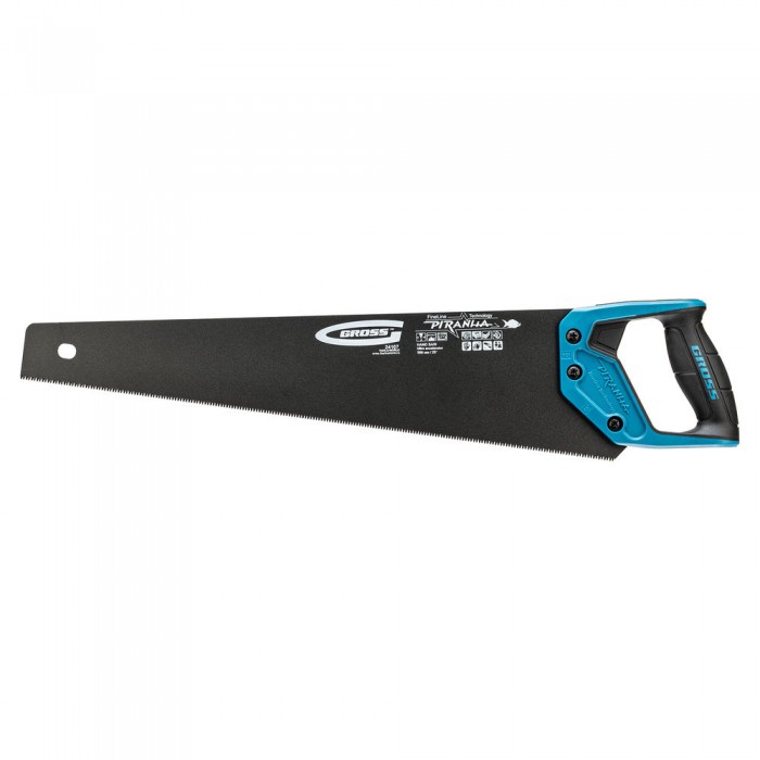 Ножовка по дереву "Piranha", 500 мм, 11-12 TPI, зуб-3D, каленый зуб, тефлоновое покрытие полотна, двухкомпонентная рукоятка Gross