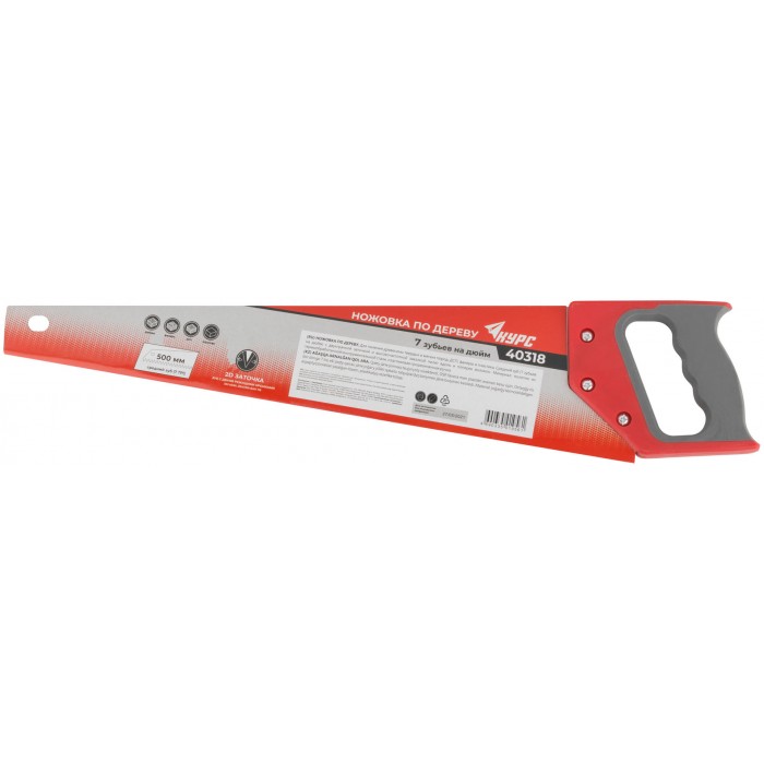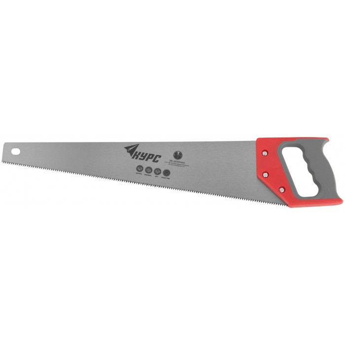 Ножовка по дереву, средний каленый зуб 7 ТPI, 2D заточка, пластиковая прорезиненная ручка 500 мм (40318)
