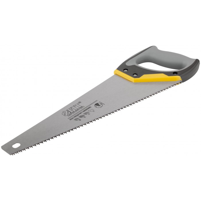 Профи. По древесине мягких и твердых пород, ДСП, фанере и пластику. Средние зубья (7 TPI) со специальной трехгранной заточкой и высокочастотной закалкой пилят вдоль и поперек волокон, обеспечивая чистоту реза и высокую точность. Материал: высокоуглеродистаая инструментальная сталь, трехкомпонентная пластиковая прорезиненная ручка.