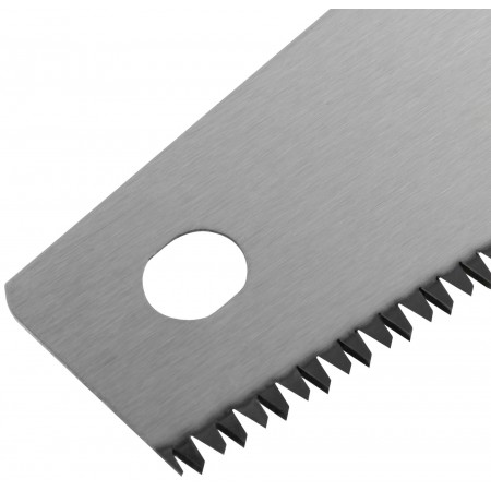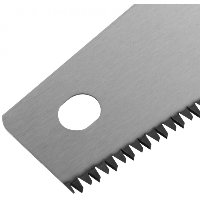 Профи. По древесине мягких и твёрдых пород, ДСП, фанере и ПВХ. Средние (7 зубьев на дюйм) калёные зубья со специальной 3-х гранной заточкой пилят вдоль и поперек волокон, обеспечивая чистоту реза и высокую точность. Материал: высокоуглеродистая инструментальная сталь, пластиковая ручка с прорезиненной вставкой.