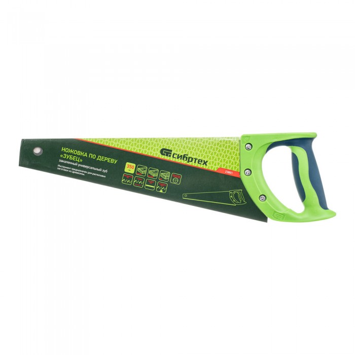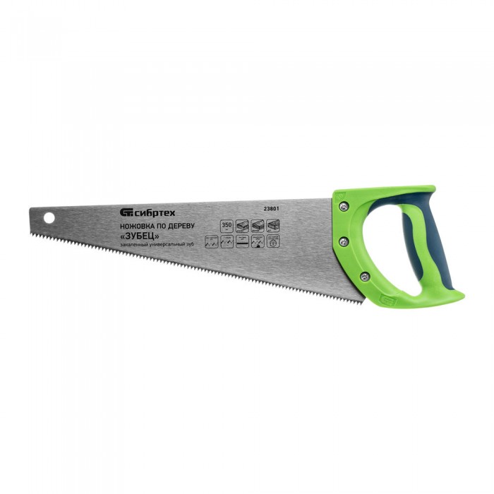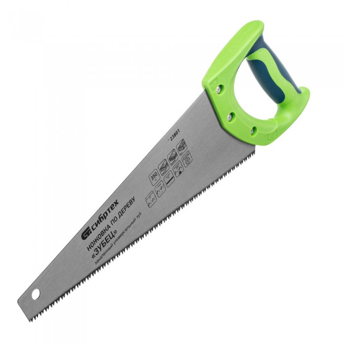 Ножовка по дереву "Зубец", 350 мм, 7-8 TPI, каленый зуб 2D, двухкомпонентная рукоятка Сибртех