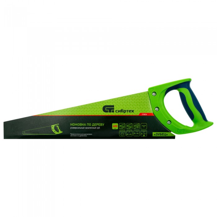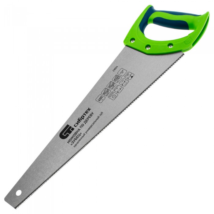 Ножовка по дереву "Зубец", 400 мм, 11 TPI, зуб 2D, каленый зуб, 2-х компонентная рукоятка Сибртех (23824)