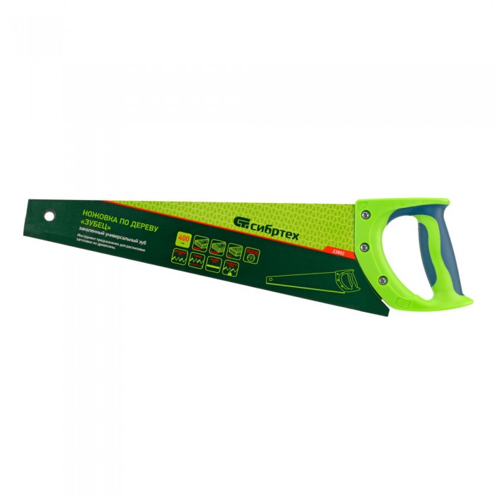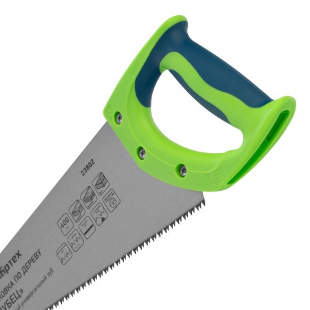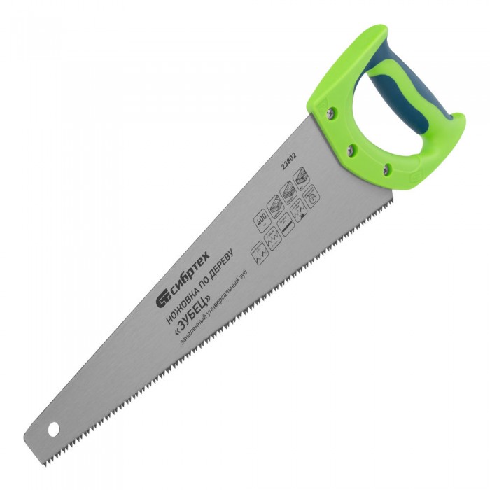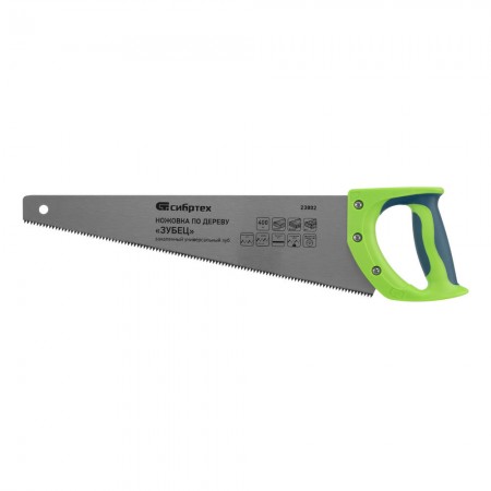 Ножовка по дереву "Зубец", 400 мм, 7-8 TPI, каленый зуб 2D, двухкомпонентная рукоятка Сибртех
