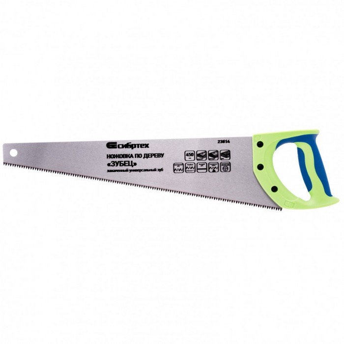 Ножовка по дереву "Зубец", 450 мм, 7-8 TPI, каленый зуб 3D, двухкомпонентная рукоятка Сибртех