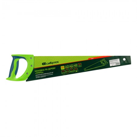 Ножовка по дереву "Зубец", 500 мм, 7-8 TPI, каленый зуб 2D, двухкомпонентная рукоятка Сибртех