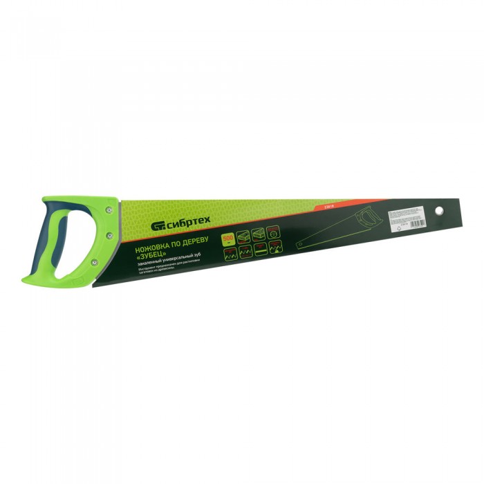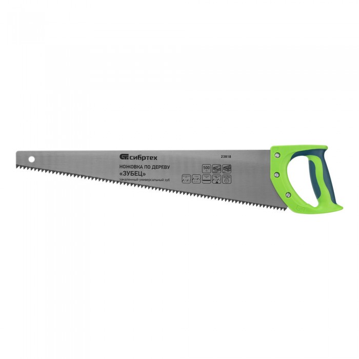 Ножовка по дереву "Зубец", 500 мм, шаг зуба 7 мм, каленый зуб 2D, двухкомпонентная рукоятка Сибртех