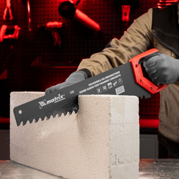 Ножовка по пенобетону, 500 мм, защитное покрытие, твердосплавные напайки на зубья, двухкомпонентная рукоятка Matrix