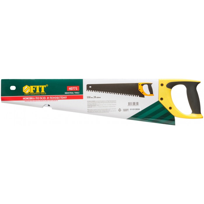 Ножовка по пенобетону, карбидные вставки на каждом 2-ом зубе, прорезиненная ручка 550 мм