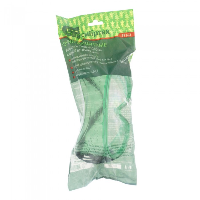 Очки закрытые "Эргономичные" с прямой вентиляцией, поликарбонат Сибртех (89163)