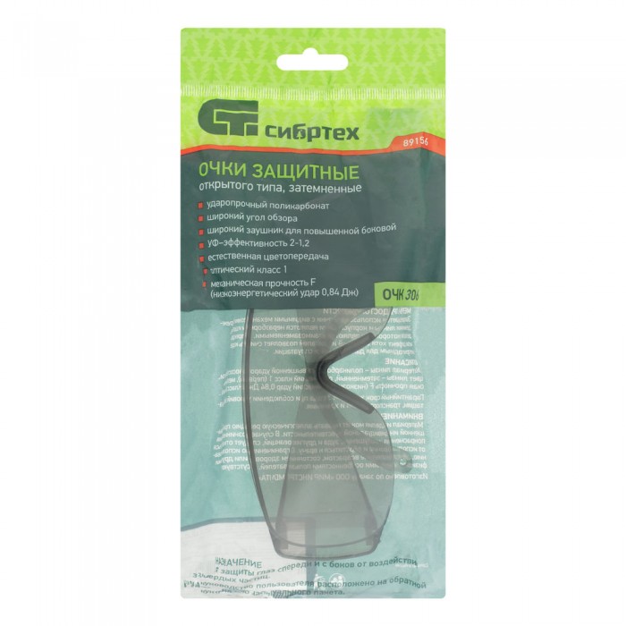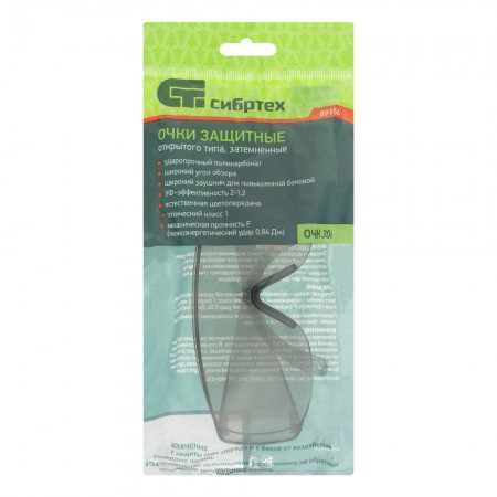 Очки защитные открытого типа, затемненные, ударопрочный поликарбонат Сибртех (89156)