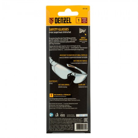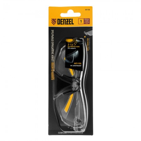 Очки защитные открытые, поликарбонатные, прозрачная линза Denzel (89198)