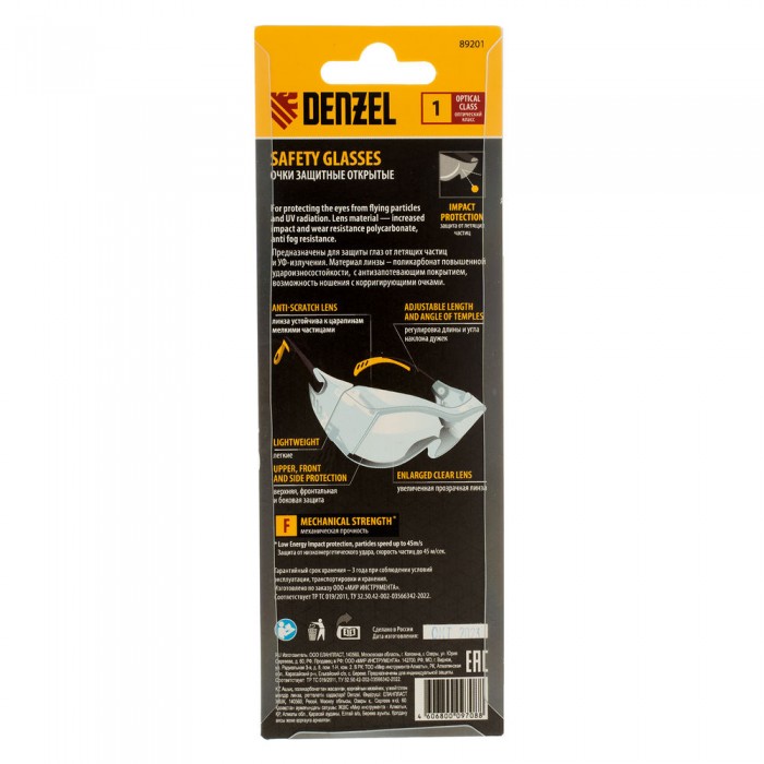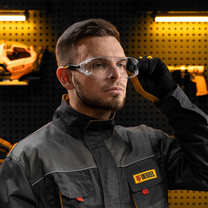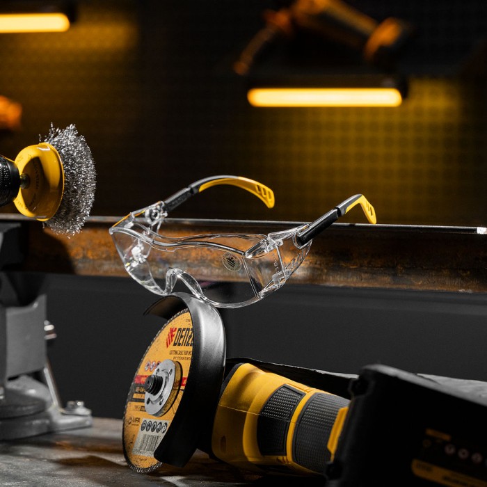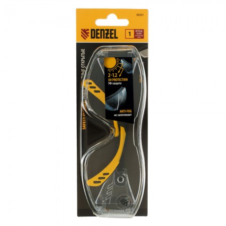 Очки защитные открытые, поликарбонатные, увеличенная прозрачная линза,  регулируемые дужки Denzel (89201)