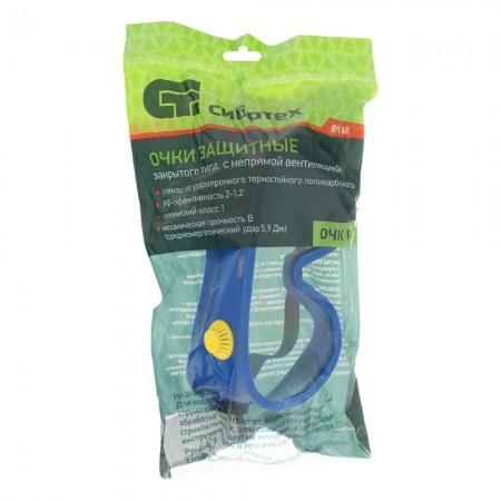 Очки защитные закрытого типа с непрямой вентиляцией, поликарбонат Сибртех (89160)