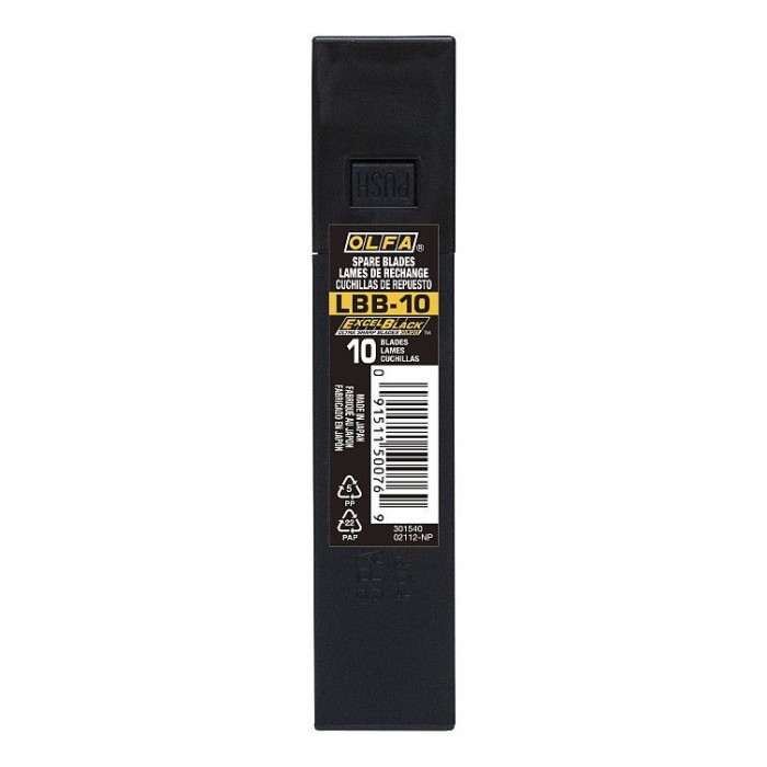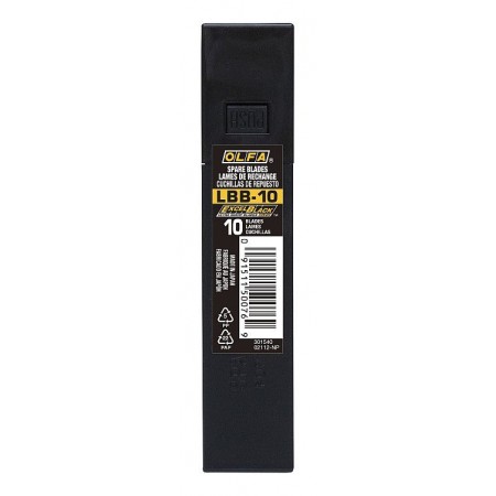 Черные сегментированные лезвия EXCEL BLACK 18 мм, 10 шт, в пластиковом кейсе OLFA OL-LBB-10