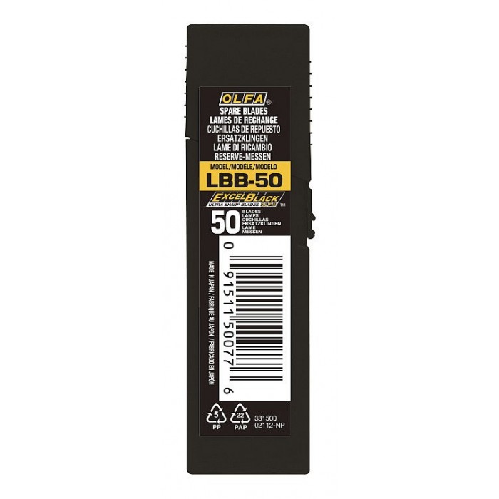 Черные сегментированные лезвия EXCEL BLACK 18 мм, 50 шт, в пластиковом кейсе, особо острые OLFA OL-LBB-50